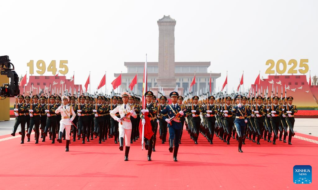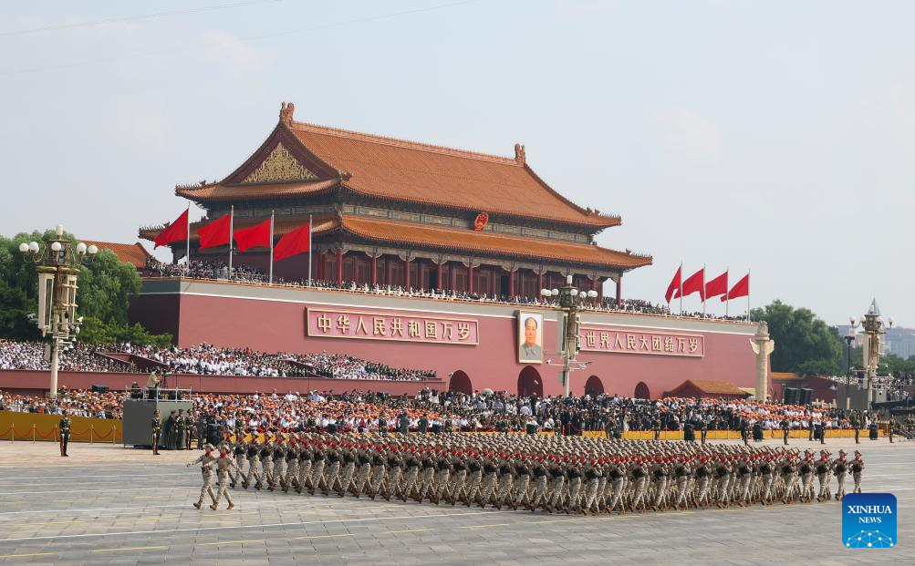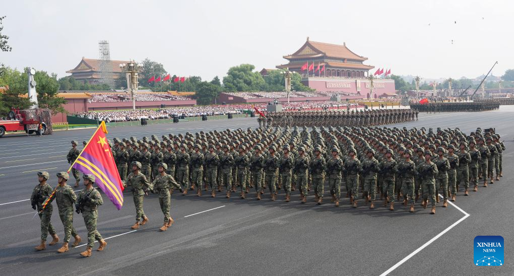 Foot formations attend a military parade in Beijing, capital of China, Sept. 3, 2025. China on Wednesday held a grand gathering to commemorate the 80th anniversary of the victory in the Chinese People's War of Resistance against Japanese Aggression and the World Anti-Fascist War. (Xinhua/Wang Jianhua)