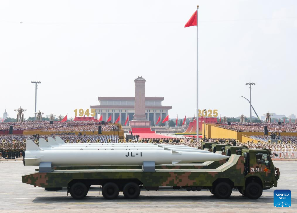 The nuclear missile formation attends a military parade in Beijing, capital of China, Sept. 3, 2025. China on Wednesday held a grand gathering to commemorate the 80th anniversary of the victory in the Chinese People's War of Resistance against Japanese Aggression and the World Anti-Fascist War. (Xinhua/Liu Dawei)