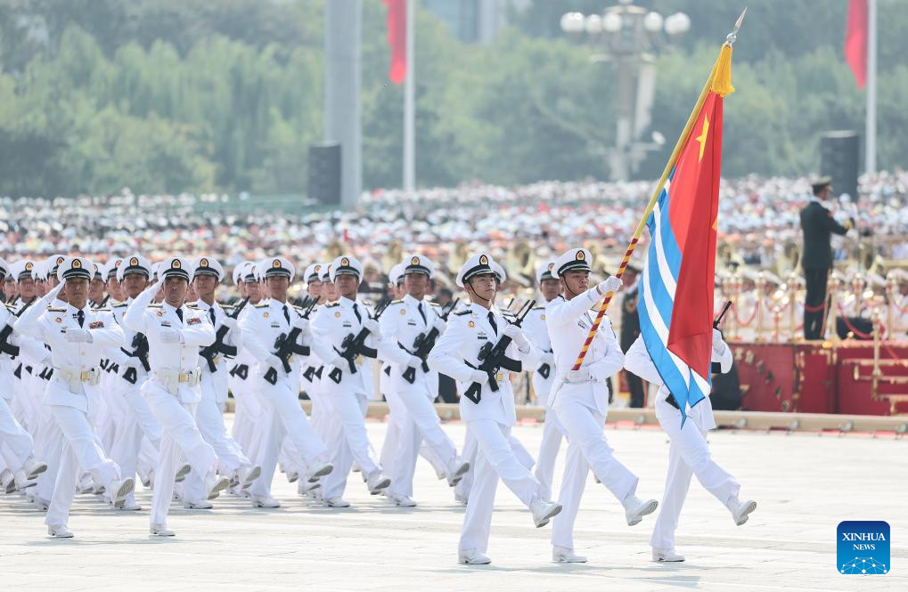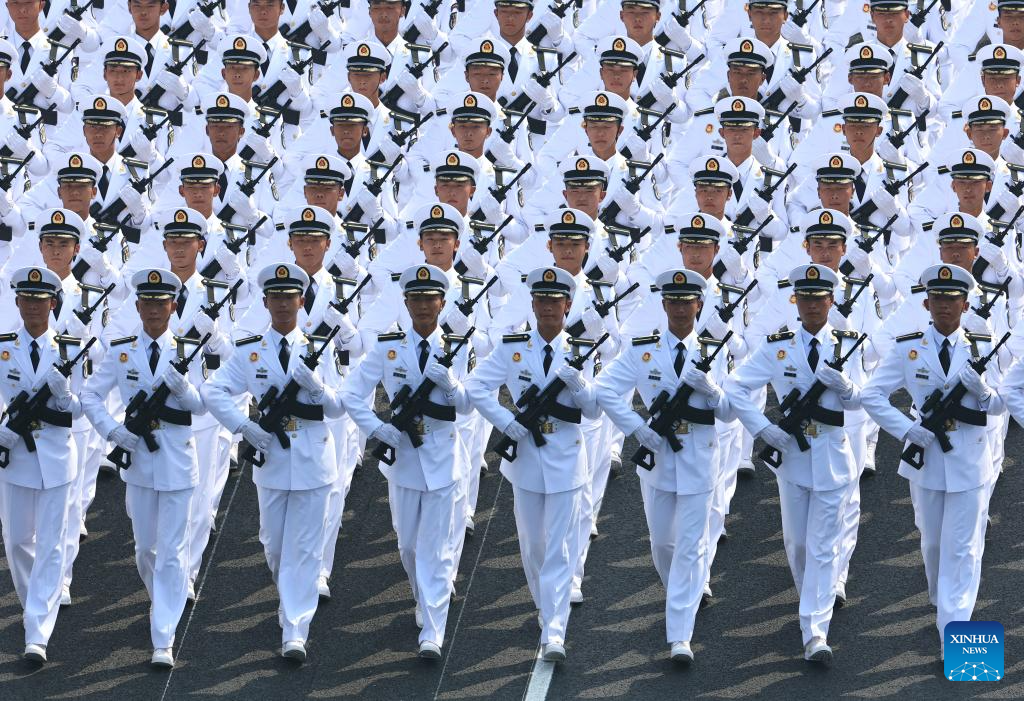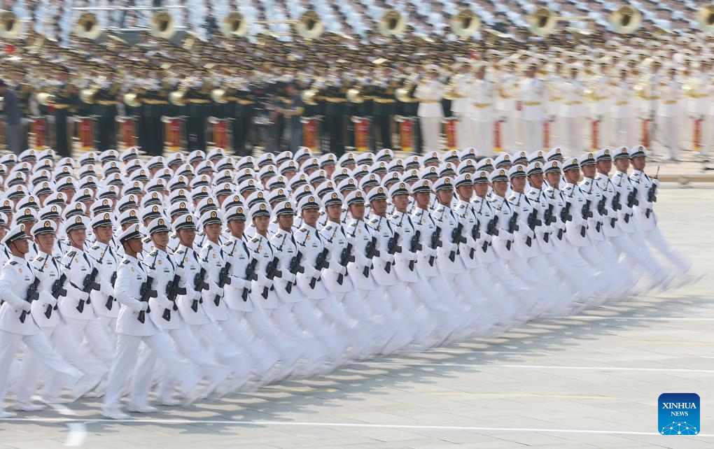 The Chinese People's Liberation Army (PLA) Navy formation attends a military parade in Beijing, capital of China, Sept. 3, 2025. China on Wednesday held a grand gathering to commemorate the 80th anniversary of the victory in the Chinese People's War of Resistance against Japanese Aggression and the World Anti-Fascist War. (Xinhua/Wang Peng)