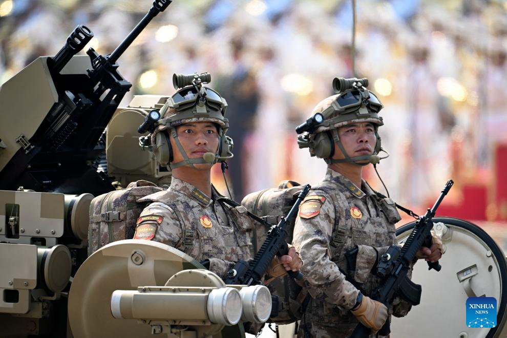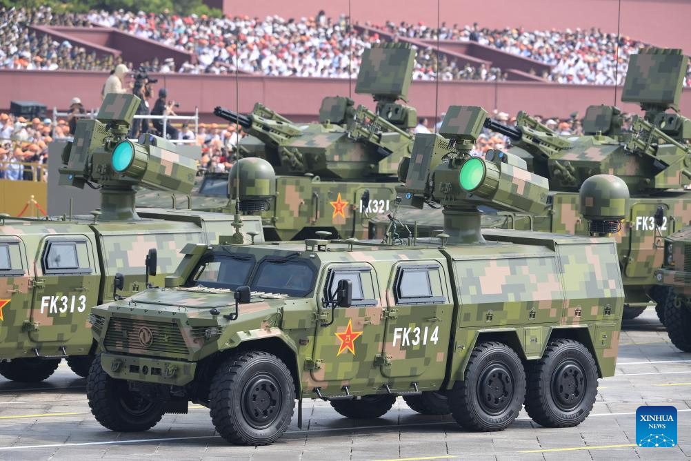 The anti-unmanned aerial vehicles formation marches through Tian'anmen Square during a military parade in Beijing, capital of China, Sept. 3, 2025. China on Wednesday held a grand gathering to commemorate the 80th anniversary of the victory in the Chinese People's War of Resistance against Japanese Aggression and the World Anti-Fascist War. (Xinhua/Jiang Han)