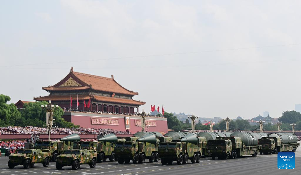 The nuclear missile formation attends a military parade in Beijing, capital of China, Sept. 3, 2025. China on Wednesday held a grand gathering to commemorate the 80th anniversary of the victory in the Chinese People's War of Resistance against Japanese Aggression and the World Anti-Fascist War. (Xinhua/Xiong Qi)