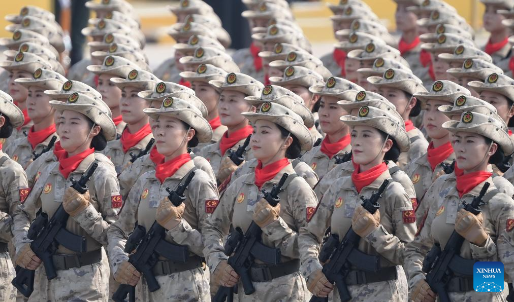 The militia formation marches through Tian'anmen Square during a military parade in Beijing, capital of China, Sept. 3, 2025. China on Wednesday held a grand gathering to commemorate the 80th anniversary of the victory in the Chinese People's War of Resistance against Japanese Aggression and the World Anti-Fascist War. (Xinhua/Jiang Han)