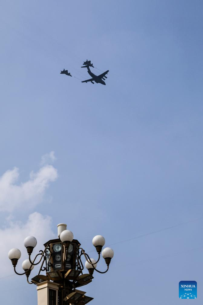 The refueler and receiver echelon attends a military parade in Beijing, capital of China, Sept. 3, 2025. China on Wednesday held a grand gathering to commemorate the 80th anniversary of the victory in the Chinese People's War of Resistance against Japanese Aggression and the World Anti-Fascist War. (Xinhua/Wang Ying)