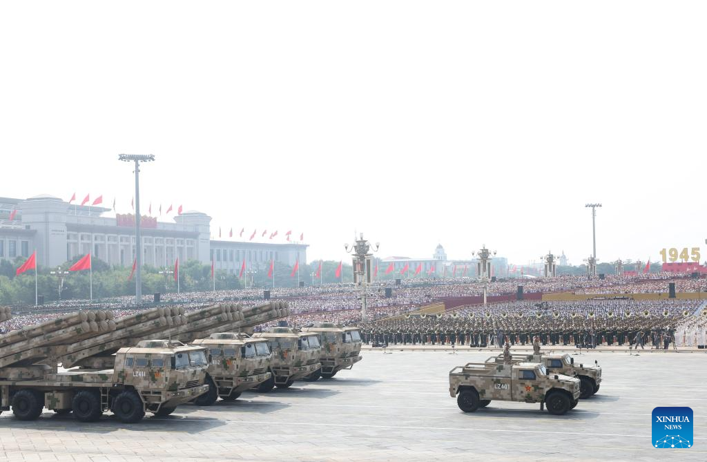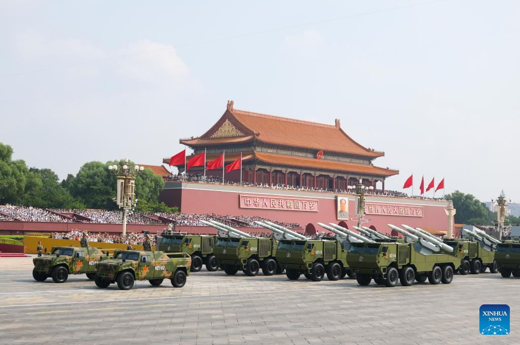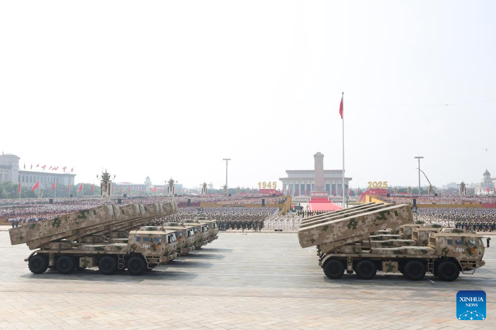 The long-range artillery formation attends a military parade in Beijing, capital of China, Sept. 3, 2025. China on Wednesday held a grand gathering to commemorate the 80th anniversary of the victory in the Chinese People's War of Resistance against Japanese Aggression and the World Anti-Fascist War. (Xinhua/Chen Bin)