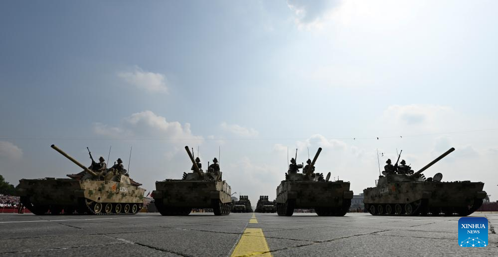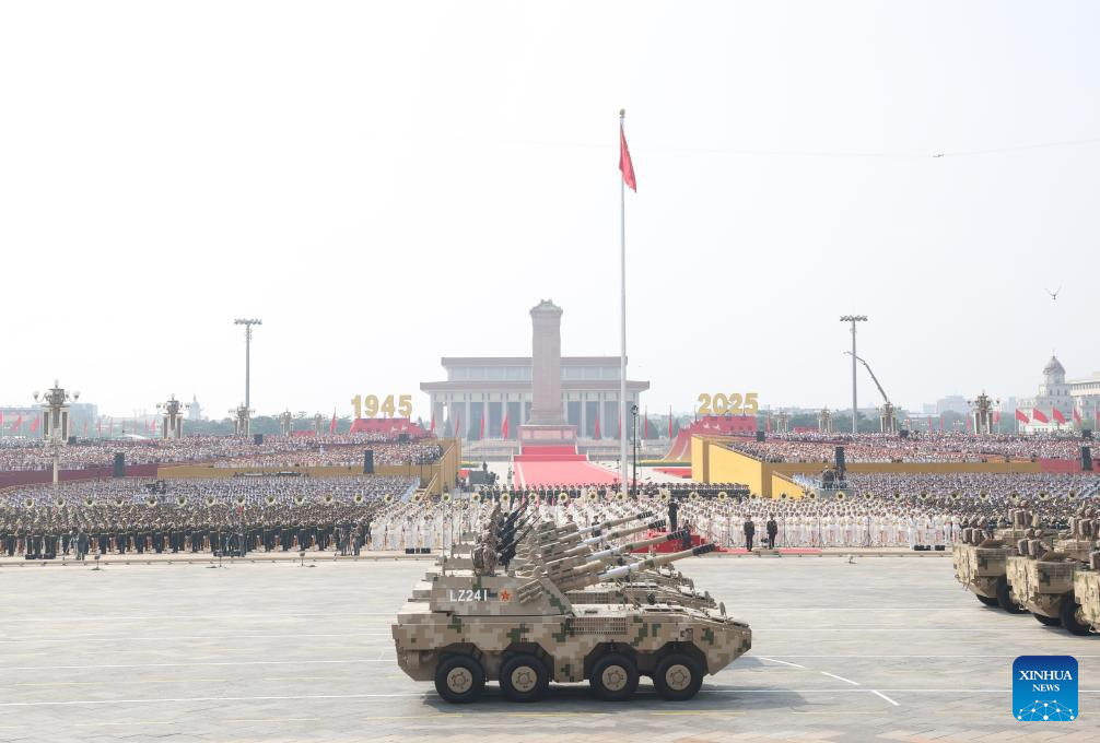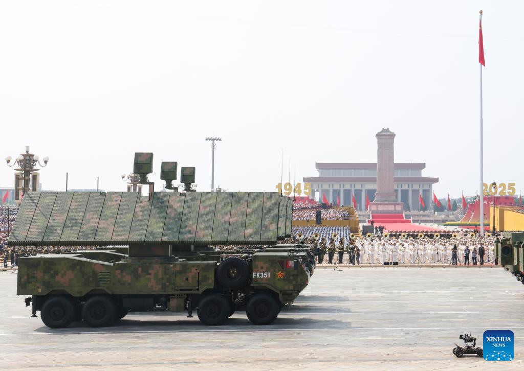 The ship-based air defense weapons formation attends a military parade in Beijing, capital of China, Sept. 3, 2025. China on Wednesday held a grand gathering to commemorate the 80th anniversary of the victory in the Chinese People's War of Resistance against Japanese Aggression and the World Anti-Fascist War. (Xinhua/Huang Wei)