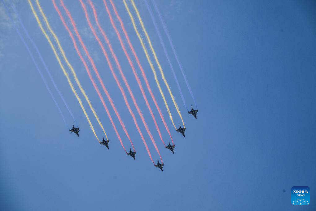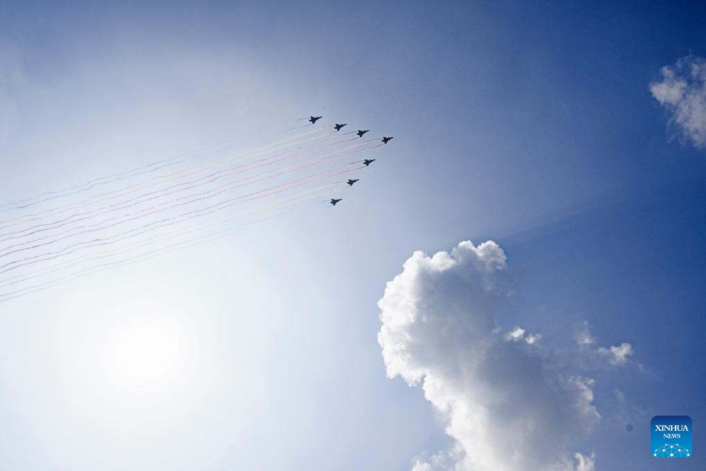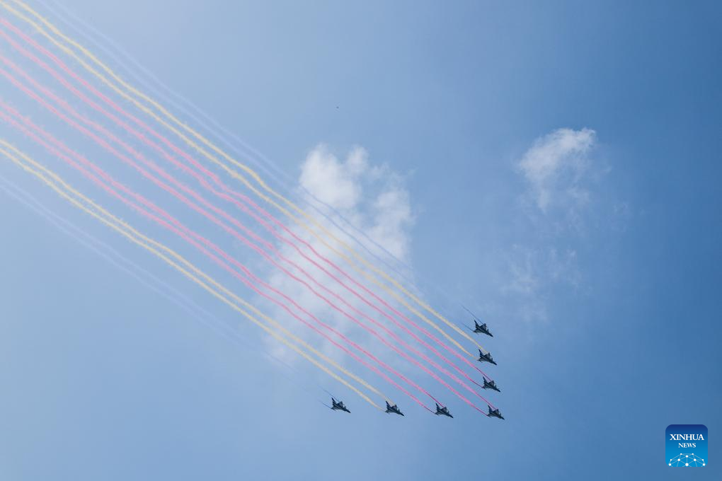 The trainer aircraft echelon attends a military parade in Beijing, capital of China, Sept. 3, 2025. China on Wednesday held a grand gathering to commemorate the 80th anniversary of the victory in the Chinese People's War of Resistance against Japanese Aggression and the World Anti-Fascist War. (Xinhua/Zhang Yuwei)