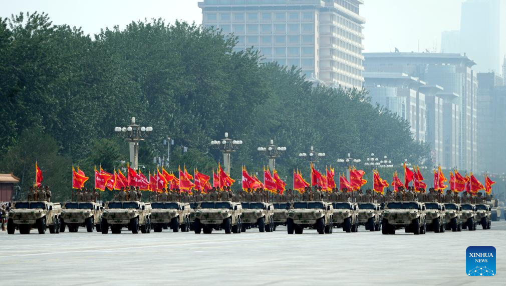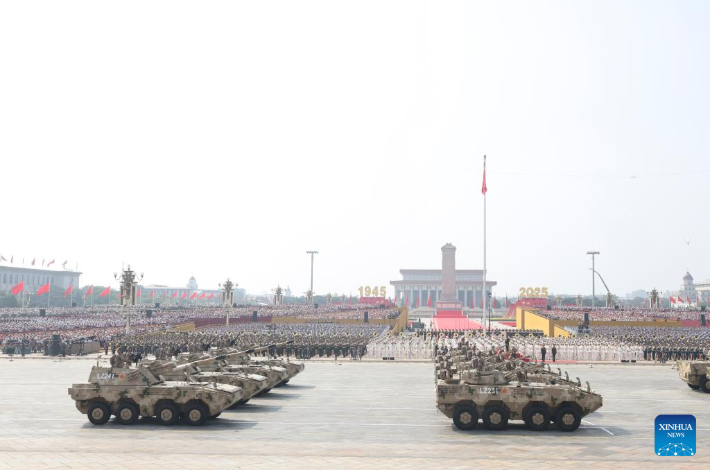 The amphibious assault formation attends a military parade in Beijing, capital of China, Sept. 3, 2025. China on Wednesday held a grand gathering to commemorate the 80th anniversary of the victory in the Chinese People's War of Resistance against Japanese Aggression and the World Anti-Fascist War. (Xinhua/Chen Bin)
