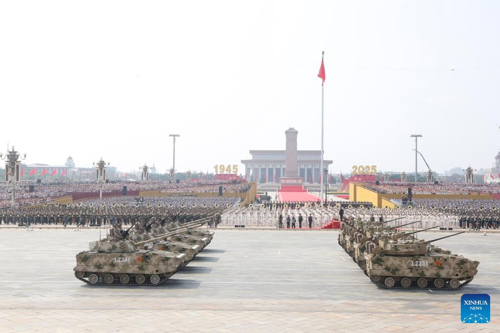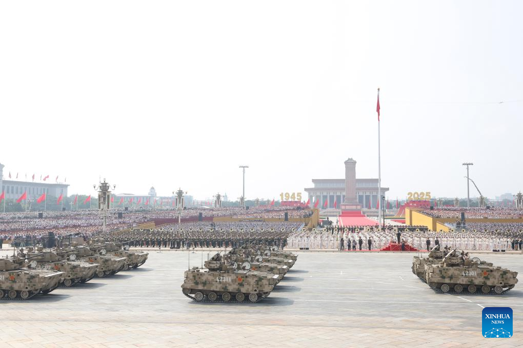 The Army formation of the Chinese People's Liberation Army marches through Tian'anmen Square during a military parade in Beijing, capital of China, Sept. 3, 2025. China on Wednesday held a grand gathering to commemorate the 80th anniversary of the victory in the Chinese People's War of Resistance against Japanese Aggression and the World Anti-Fascist War. (Xinhua/Chen Yichen)