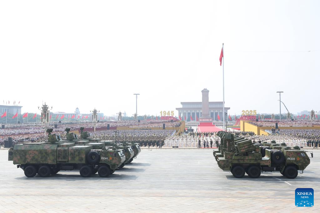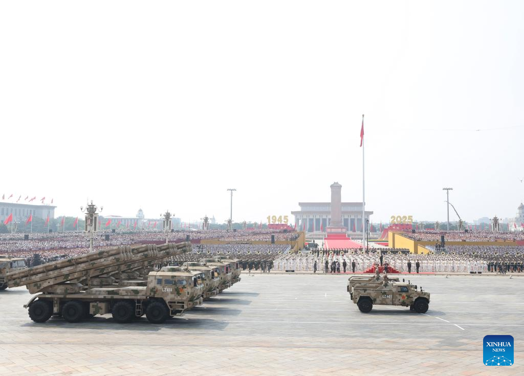 The long-range artillery formation attends a military parade in Beijing, capital of China, Sept. 3, 2025. China on Wednesday held a grand gathering to commemorate the 80th anniversary of the victory in the Chinese People's War of Resistance against Japanese Aggression and the World Anti-Fascist War. (Xinhua/Chen Bin)
