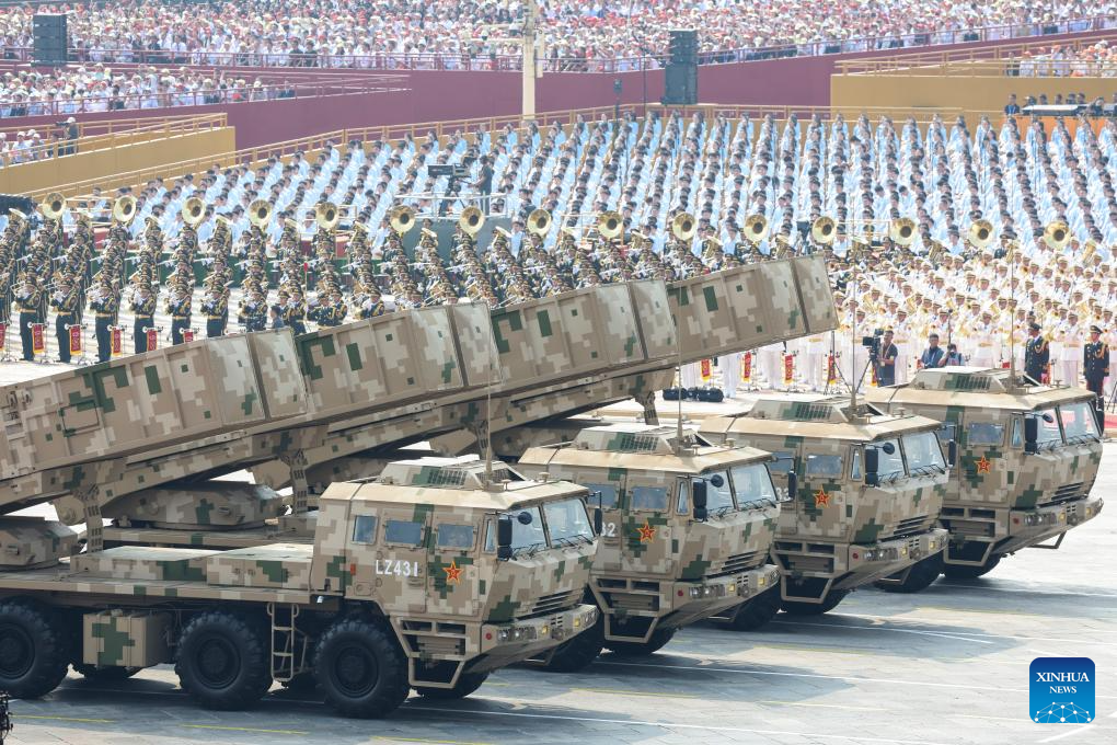 The long-range artillery formation attends a military parade in Beijing, capital of China, Sept. 3, 2025. China on Wednesday held a grand gathering to commemorate the 80th anniversary of the victory in the Chinese People's War of Resistance against Japanese Aggression and the World Anti-Fascist War. (Xinhua/Yao Dawei)
