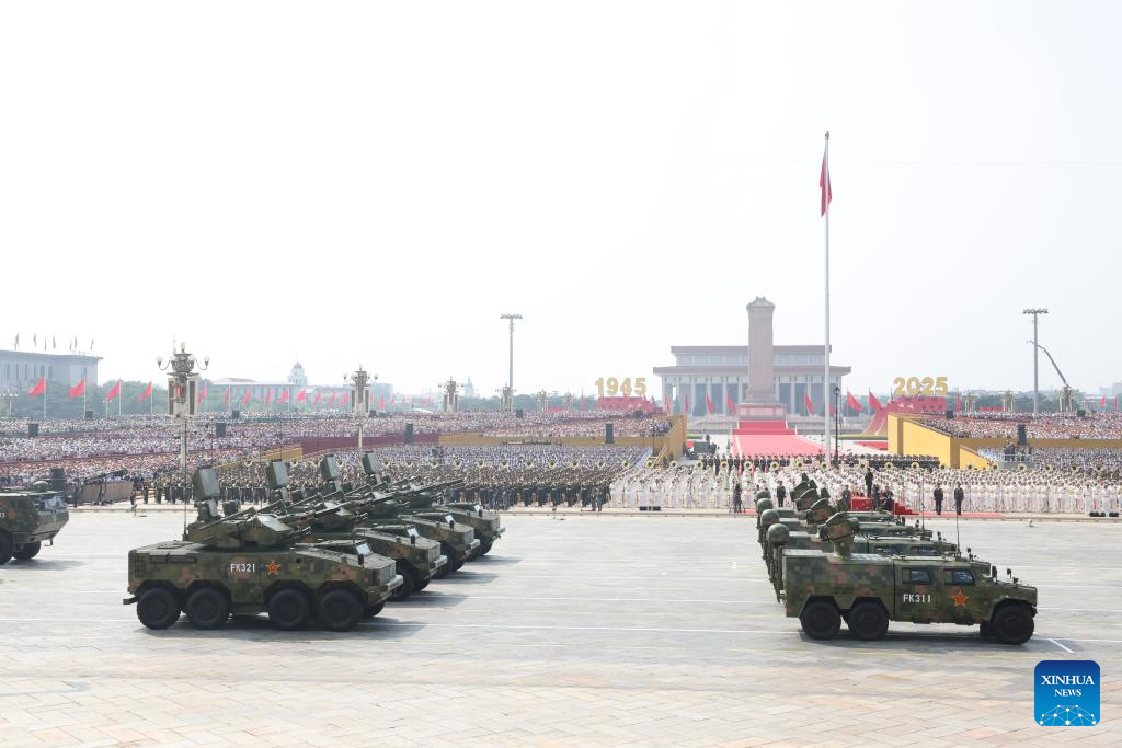 The anti-unmanned aerial vehicles formation attends a military parade in Beijing, capital of China, Sept. 3, 2025. China on Wednesday held a grand gathering to commemorate the 80th anniversary of the victory in the Chinese People's War of Resistance against Japanese Aggression and the World Anti-Fascist War. (Xinhua/Chen Bin)
