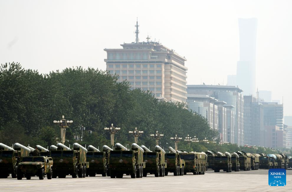 The anti-ship missile formation attends a military parade in Beijing, capital of China, Sept. 3, 2025. China on Wednesday held a grand gathering to commemorate the 80th anniversary of the victory in the Chinese People's War of Resistance against Japanese Aggression and the World Anti-Fascist War. (Xinhua/Fei Maohua)