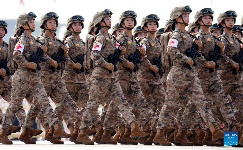 The formation of People's Liberation Army's Joint Logistics Support Force marches through Tian'anmen Square during a military parade in Beijing, capital of China, Sept. 3, 2025. China on Wednesday held a grand gathering to commemorate the 80th anniversary of the victory in the Chinese People's War of Resistance against Japanese Aggression and the World Anti-Fascist War. (Xinhua/Xu Chang)