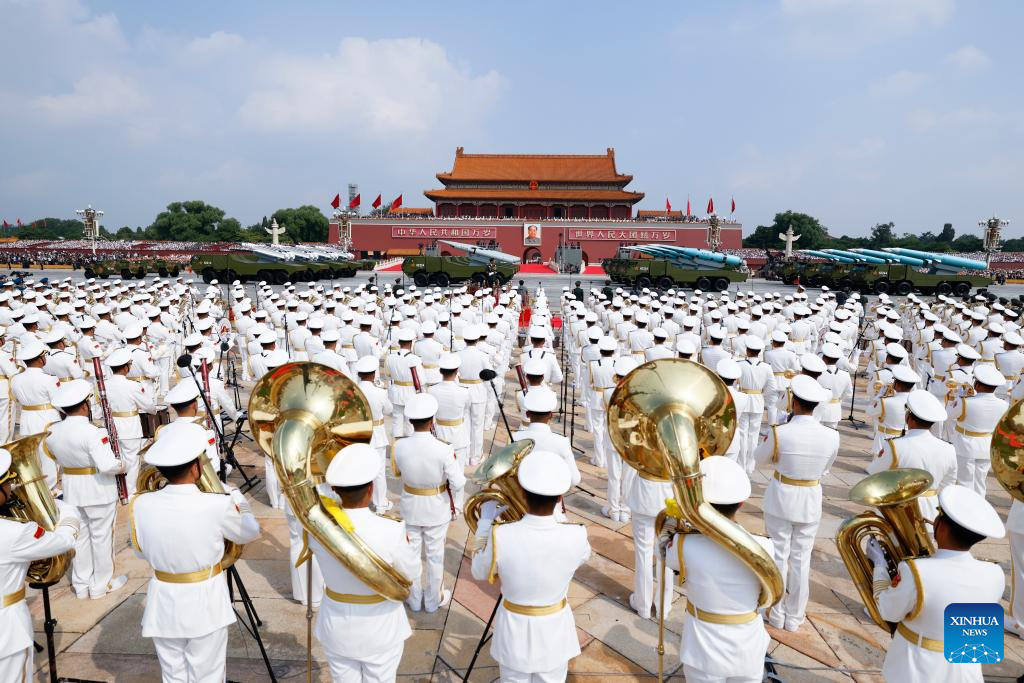The information support formation attends a military parade in Beijing, capital of China, Sept. 3, 2025. China on Wednesday held a grand gathering to commemorate the 80th anniversary of the victory in the Chinese People's War of Resistance against Japanese Aggression and the World Anti-Fascist War. (Xinhua/Ju Huanzong)