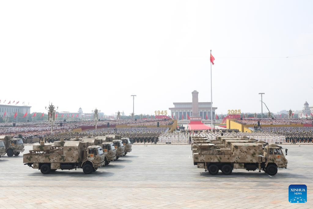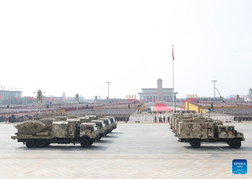 The electronic countermeasures formation attends a military parade in Beijing, capital of China, Sept. 3, 2025. China on Wednesday held a grand gathering to commemorate the 80th anniversary of the victory in the Chinese People's War of Resistance against Japanese Aggression and the World Anti-Fascist War. (Xinhua/Chen Bin)