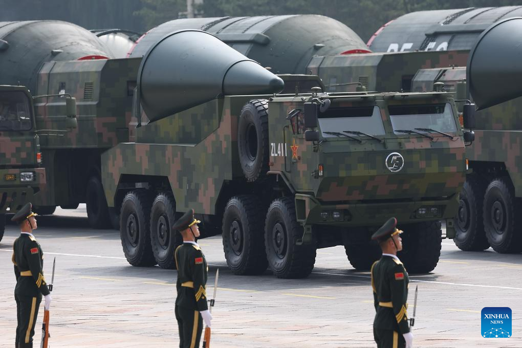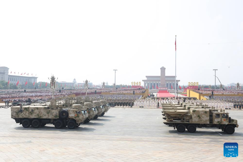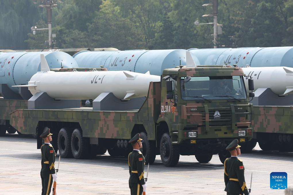The nuclear missile formation attends a military parade in Beijing, capital of China, Sept. 3, 2025. China on Wednesday held a grand gathering to commemorate the 80th anniversary of the victory in the Chinese People's War of Resistance against Japanese Aggression and the World Anti-Fascist War. (Xinhua/Pan Yulong)