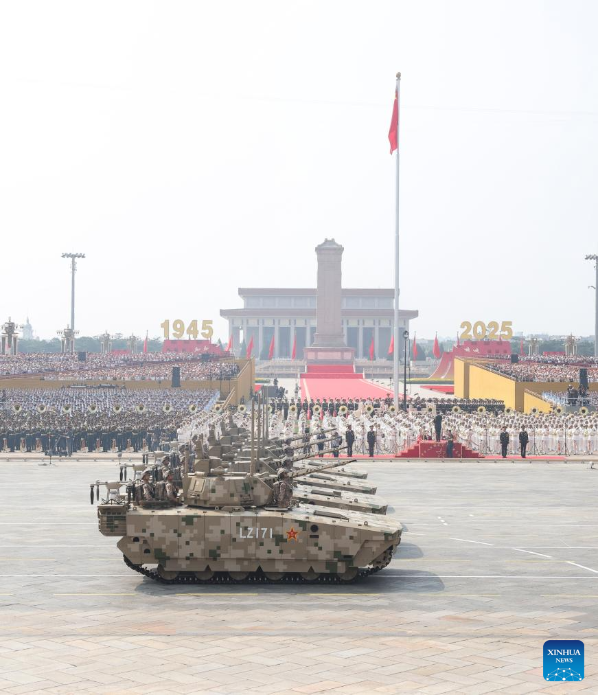 The ground assault formation passes through Tian'anmen Square during a military parade in Beijing, capital of China, Sept. 3, 2025. China on Wednesday held a grand gathering to commemorate the 80th anniversary of the victory in the Chinese People's War of Resistance against Japanese Aggression and the World Anti-Fascist War. (Xinhua/Chen Bin)