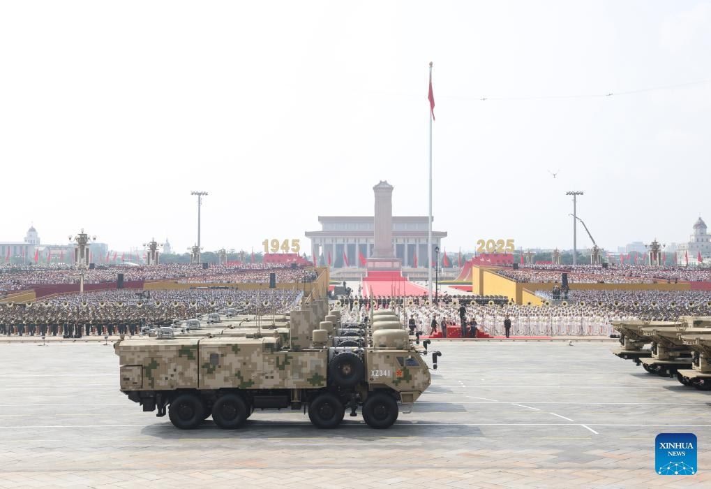 The anti-ship missile formation attends a military parade in Beijing, capital of China, Sept. 3, 2025. China on Wednesday held a grand gathering to commemorate the 80th anniversary of the victory in the Chinese People's War of Resistance against Japanese Aggression and the World Anti-Fascist War. (Xinhua/Ju Huanzong)