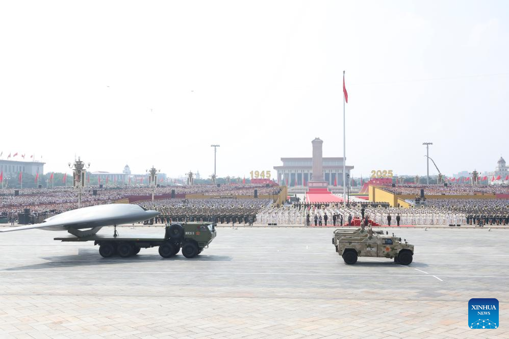 The airborne unmanned warfare formation attends a military parade in Beijing, capital of China, Sept. 3, 2025. China on Wednesday held a grand gathering to commemorate the 80th anniversary of the victory in the Chinese People's War of Resistance against Japanese Aggression and the World Anti-Fascist War. (Xinhua/Chen Bin)
