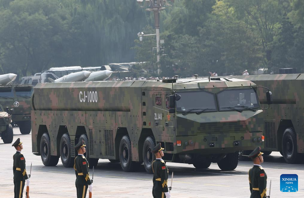 The anti-ship missile formation attends a military parade in Beijing, capital of China, Sept. 3, 2025. China on Wednesday held a grand gathering to commemorate the 80th anniversary of the victory in the Chinese People's War of Resistance against Japanese Aggression and the World Anti-Fascist War. (Xinhua/Ju Huanzong)
