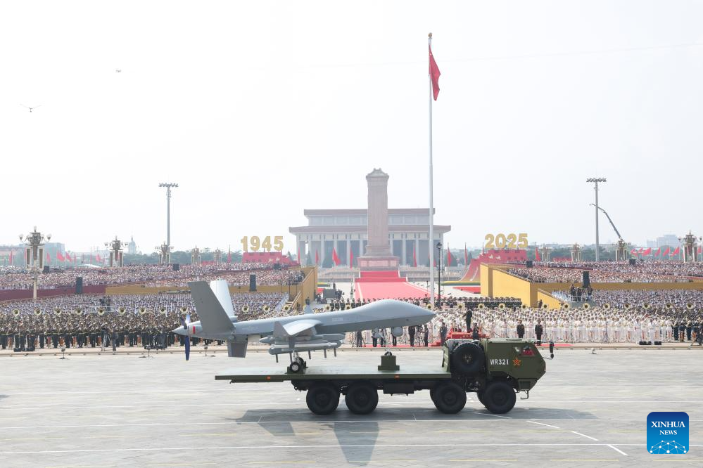 The airborne unmanned warfare formation attends a military parade in Beijing, capital of China, Sept. 3, 2025. China on Wednesday held a grand gathering to commemorate the 80th anniversary of the victory in the Chinese People's War of Resistance against Japanese Aggression and the World Anti-Fascist War. (Xinhua/Chen Bin)