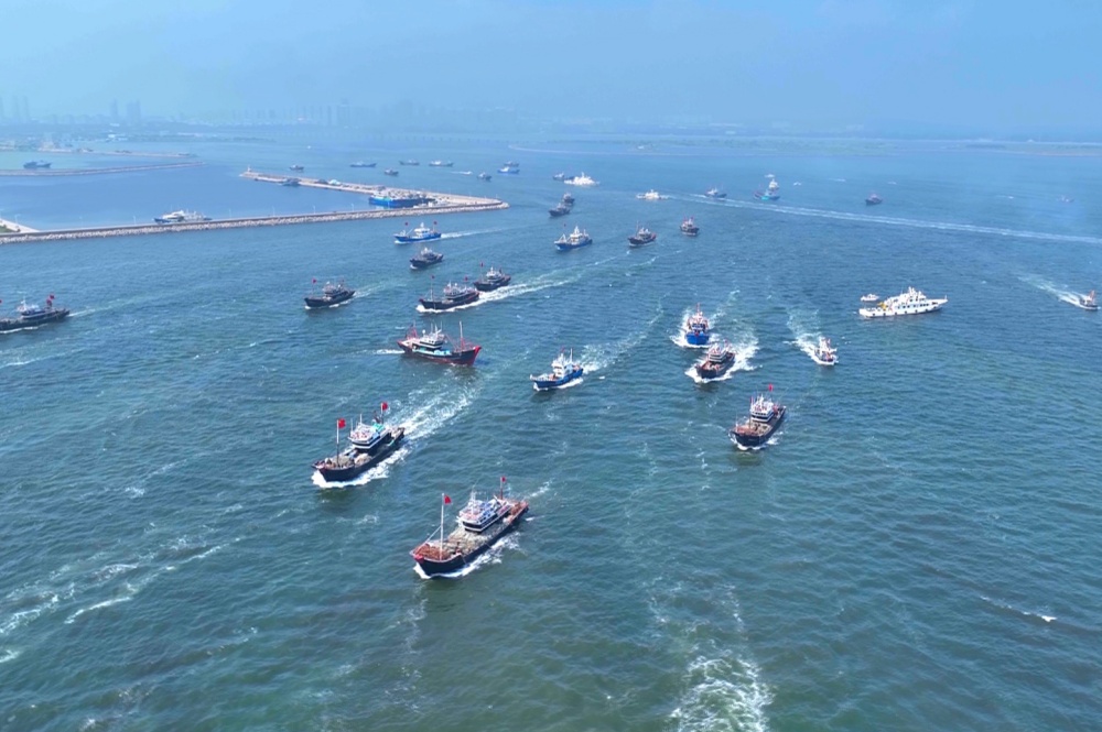 On the morning of Sept. 1, 2025, crowds gathered at a fishing port in Jinzhou, northeast China's Liaoning Province, as part of a ceremony celebrating the opening of the fishing season. At 11:58 a.m., more than 100 fishing boats sounded their whistles and set sail from the central fishing port into the Bohai Sea, marking the start of a new season of marine harvests.