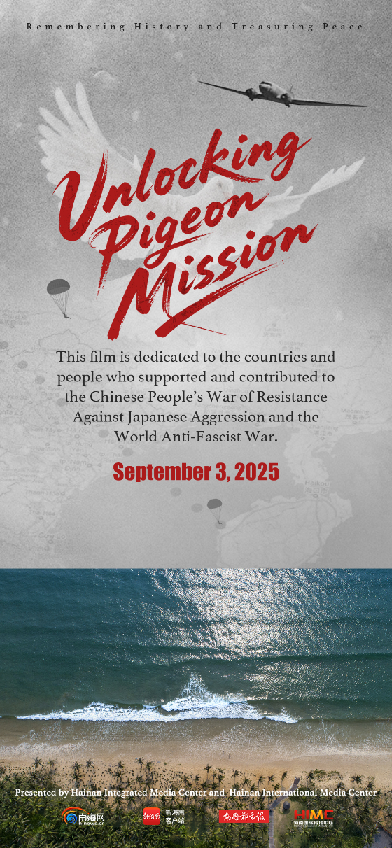 A new documentary, "Unlocking Pigeon Mission," commemorating the 80th anniversary of the victory in the Chinese People's War of Resistance Against Japanese Aggression and the World Anti-Fascist War, was released on September 3rd. The film sheds light on a little-known chapter of the history: a daring rescue of Allied Prisoners of War (POWs) on China's Hainan Island in 1945.