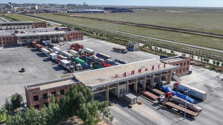 ERENHOT, Sept. 4 (Xinhua) -- Erenhot, the largest land port on the China-Mongolia border, is a pivotal entry-exit point for the central route of the China-Europe railway service. As of Sept. 3, inbound and outbound passenger traffic volumes and the number of vehicles driving through Erenhot reached 1.976 million and 512,000, respectively, up by 13.2 percent and 16.6 percent as compared with the same period of last year.