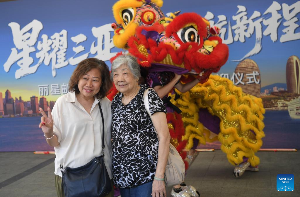 Tourists of the cruise ship "Star Voyager" of Star Cruises pose for photos at Sanya Phoenix Island International Cruise Port in Sanya, south China's Hainan Province, Sept. 4, 2025. The cruise ship carrying approximately 1,200 tourists from 16 countries and regions made its first visit to Sanya and inaugurated its maiden voyage on the Chinese mainland. (Xinhua/Zhao Yingquan)