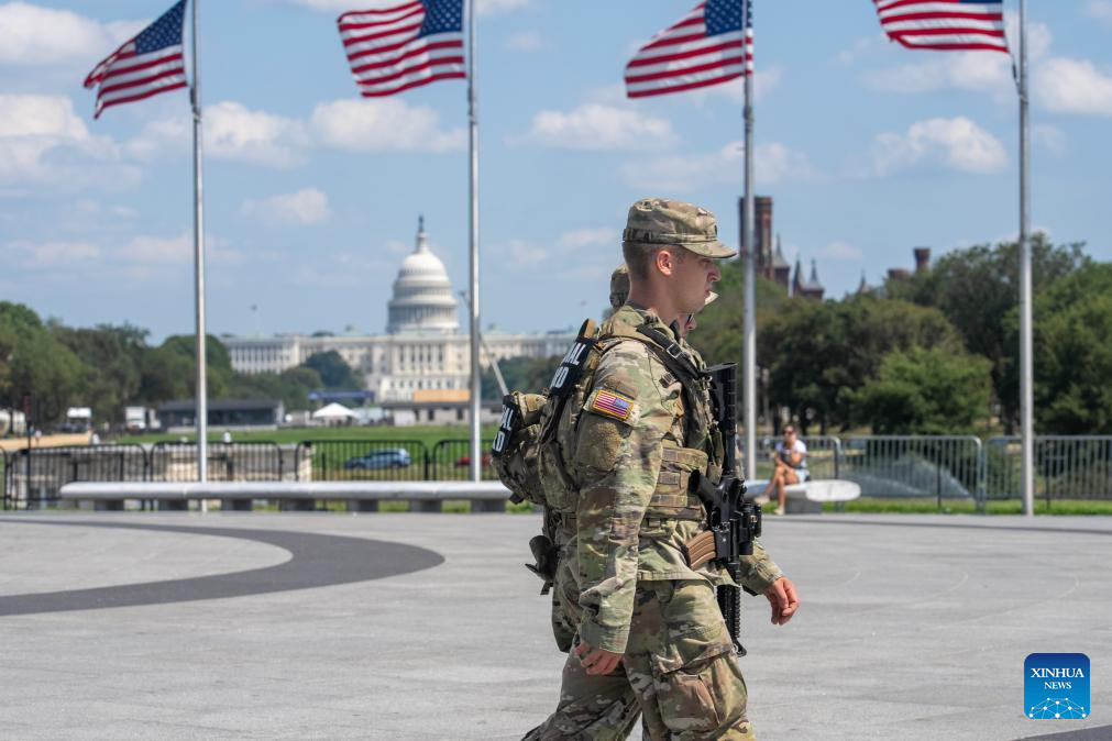 Members of the National Guard patrol in Washington, D.C., the United States, Sept. 4, 2025. Washington, D.C. has filed a lawsuit against the Trump administration over the deployment of National Guard troops in the nation's capital, the district's Attorney General Brian Schwalb announced Thursday. (Xinhua/Hu Yousong)