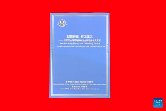 This undated photo shows a copy of the think tank report "Remembering History and Defending Justice -- Great Contributions of the Main Battlefield in the East of the World Anti-Fascist War." A think tank report released here on Friday underlines the great significance and contributions of the Chinese people's resistance against Japanese aggression to the victory in the World Anti-Fascist War. The report was jointly issued in Chinese and English by the national high-level think tanks of the Central Institute of Party History and Literature and Xinhua News Agency during the "Hongting Forum High Level Dialogue: The Global Significance of the Main Battlefield in the East". (Xinhua)