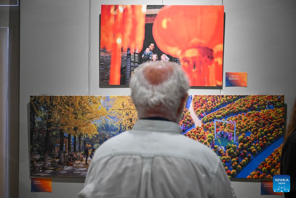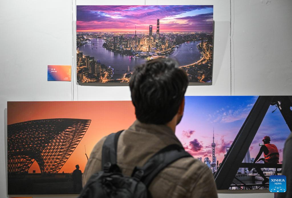 A man visits the "Amazing Shanghai" City Branding Campaign and Shanghai-Istanbul Visual Arts Exhibition in Istanbul, Trkiye, Sept. 5, 2025. The "Amazing Shanghai" City Branding Campaign and Shanghai-Istanbul Visual Arts Exhibition was held in Istanbul on Friday. The event brought together nearly a hundred works of photography, illustrations and videos from artists of both China and Trkiye, showcasing urban landscapes and cultural essence of the two port cities. (Xinhua/Liu Lei)