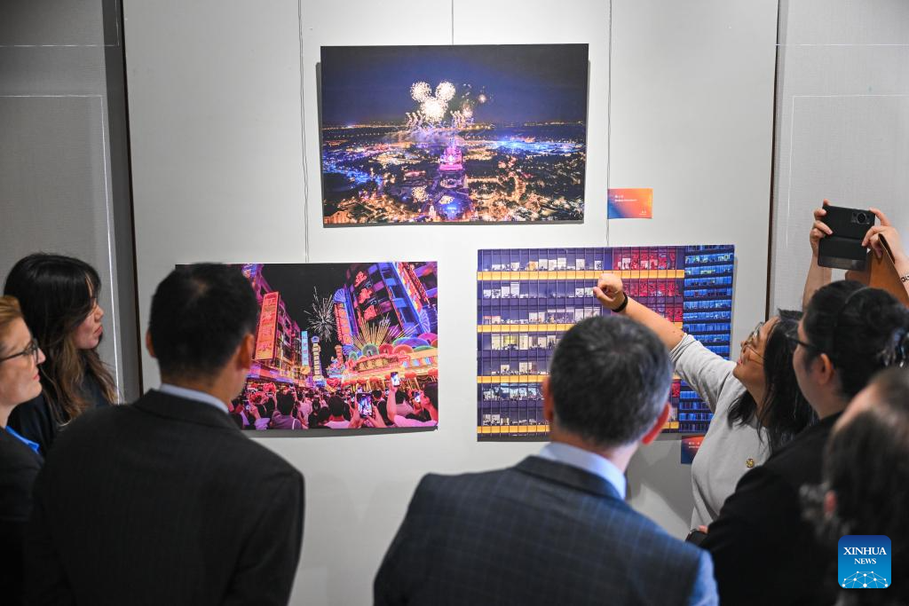 People visit the "Amazing Shanghai" City Branding Campaign and Shanghai-Istanbul Visual Arts Exhibition in Istanbul, Trkiye, Sept. 5, 2025. The "Amazing Shanghai" City Branding Campaign and Shanghai-Istanbul Visual Arts Exhibition was held in Istanbul on Friday. The event brought together nearly a hundred works of photography, illustrations and videos from artists of both China and Trkiye, showcasing urban landscapes and cultural essence of the two port cities. (Xinhua/Liu Lei)
