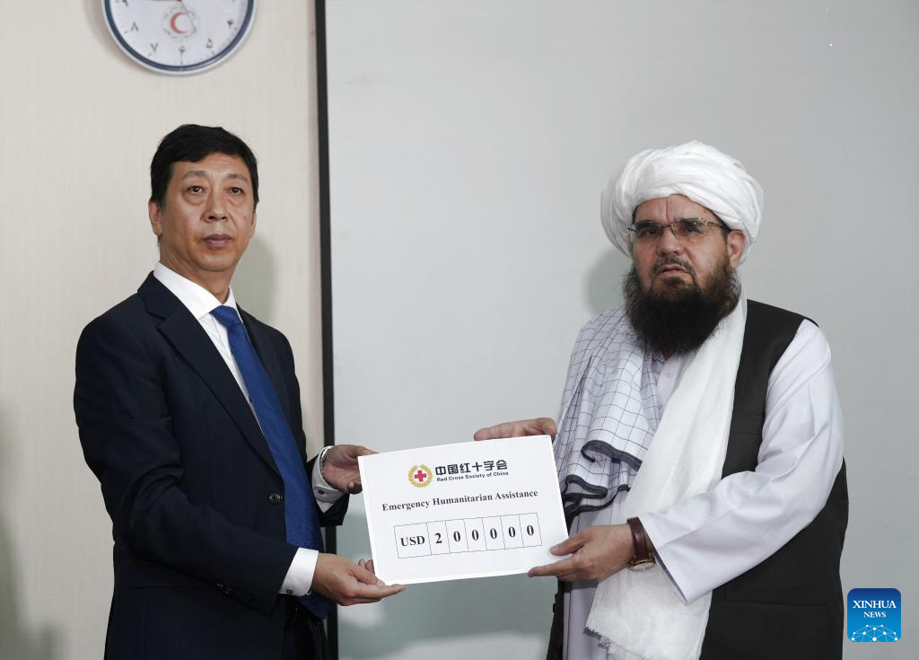 KABUL, Sept. 5 (Xinhua) -- Bao Xuhui, charge d'affaires of the Chinese embassy in Afghanistan, met with President of the Afghan Red Crescent Society (ARCS) Dilawar on Friday and handed over 200,000 U.S. dollars in emergency humanitarian cash assistance provided by the Red Cross Society of China to support Afghanistan's earthquake relief efforts.