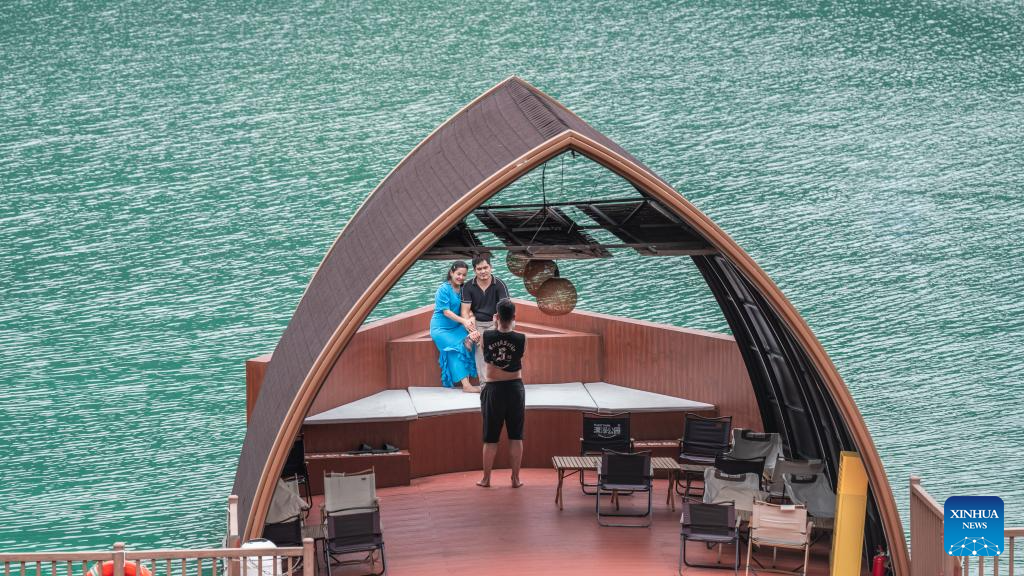 Visitors have fun at a park in Xiongjiang Town of Minqing County, southeast China's Fujian Province, Spet. 6, 2025. In recent years, Xiongjiang Town has been encouraging locals to renovate rural houses and utilize idle spaces to develop an ecological tourism industry by integrating characteristic agriculture, homestays, and rural sightseeing. This initiative has attracted a number of young entrepreneurs to start business. Currently, Xiongjiang Town receives an average of more than 1,700 trips daily, with the peak of over 18,700 trips in a single day during weekend and holiday period. (Xinhua/Zhou Yi)