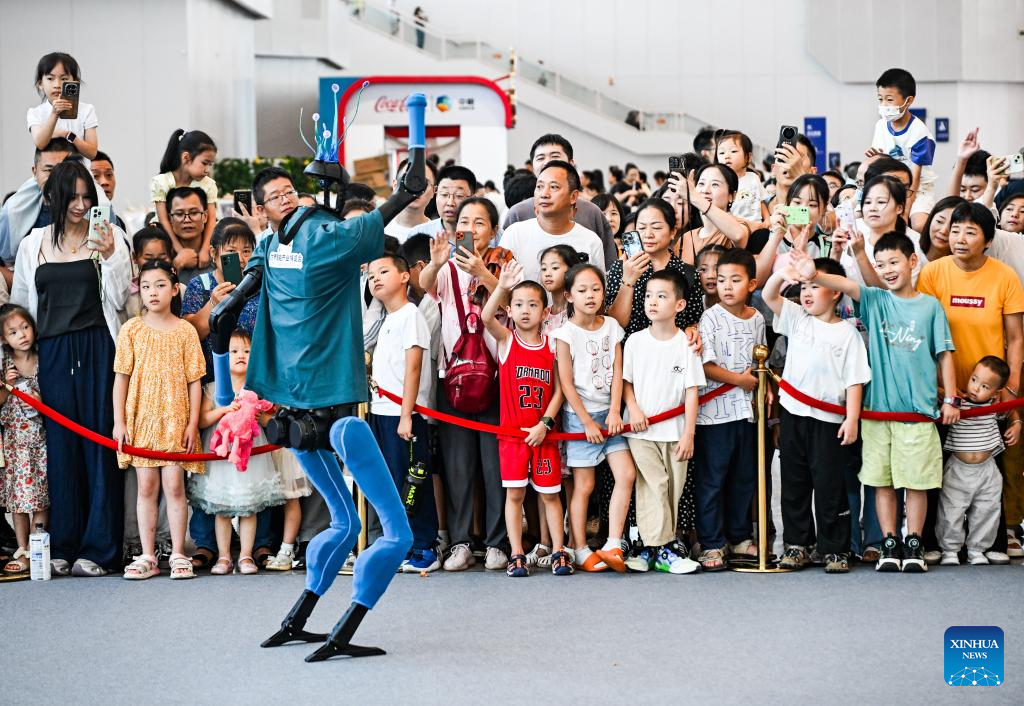 Visitors interact with a home service robot during the World Smart Industry Expo 2025 in southwest China's Chongqing Municipality, Sept. 6, 2025. The World Smart Industry Expo 2025 kicked off on Friday in southwest China's Chongqing Municipality, showcasing advanced achievements including AI rehabilitation systems, portable wearable devices, elderly care robots, and senior-friendly equipment. (Xinhua/Chen Cheng)