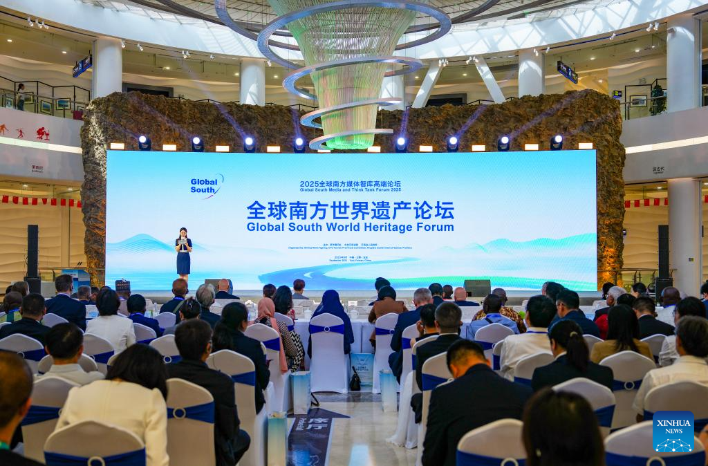 Guests attend the Global South World Heritage Forum at the world natural heritage museum of the Chengjiang Fossil Site in Yuxi, southwest China's Yunnan Province, Sept. 7, 2025. (Xinhua/Chen Xinbo)