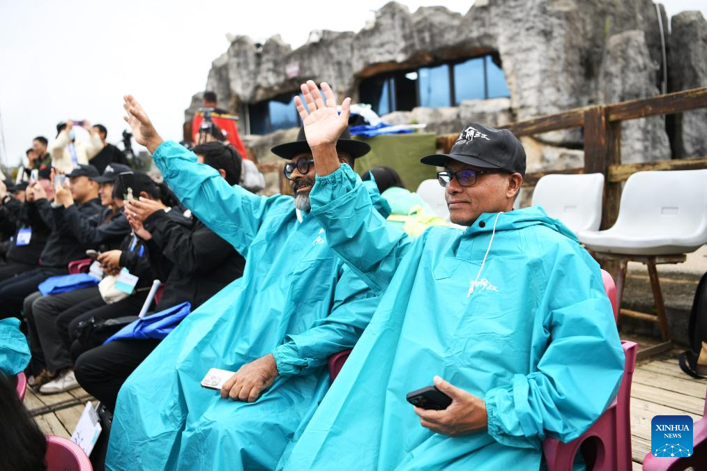Guests to the 2025 Global South Media and Think Tank Forum watch a performance at the Yulong Snow Mountain scenic spot in Lijiang City, southwest China's Yunnan Province, Sept. 8, 2025. (Xinhua/Jin Mamengni)