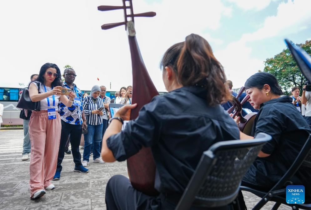 Guests to the 2025 Global South Media and Think Tank Forum enjoy a performance at the Nie Er Memorial Hall in Yuxi City, southwest China's Yunnan Province, Sept. 8, 2025. (Xinhua/Chen Xinbo)