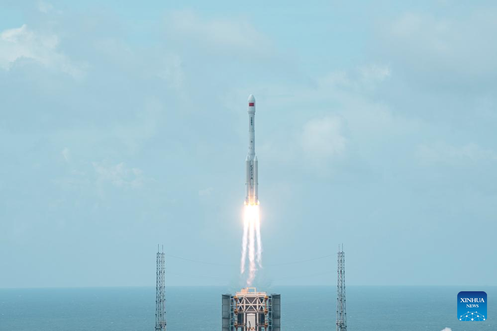 A modified Long March-7 carrier rocket carrying the Yaogan-45 satellite blasts off from the Wenchang Spacecraft Launch Site in south China's Hainan Province, Sept. 9, 2025. (Xinhua/Yang Guanyu)