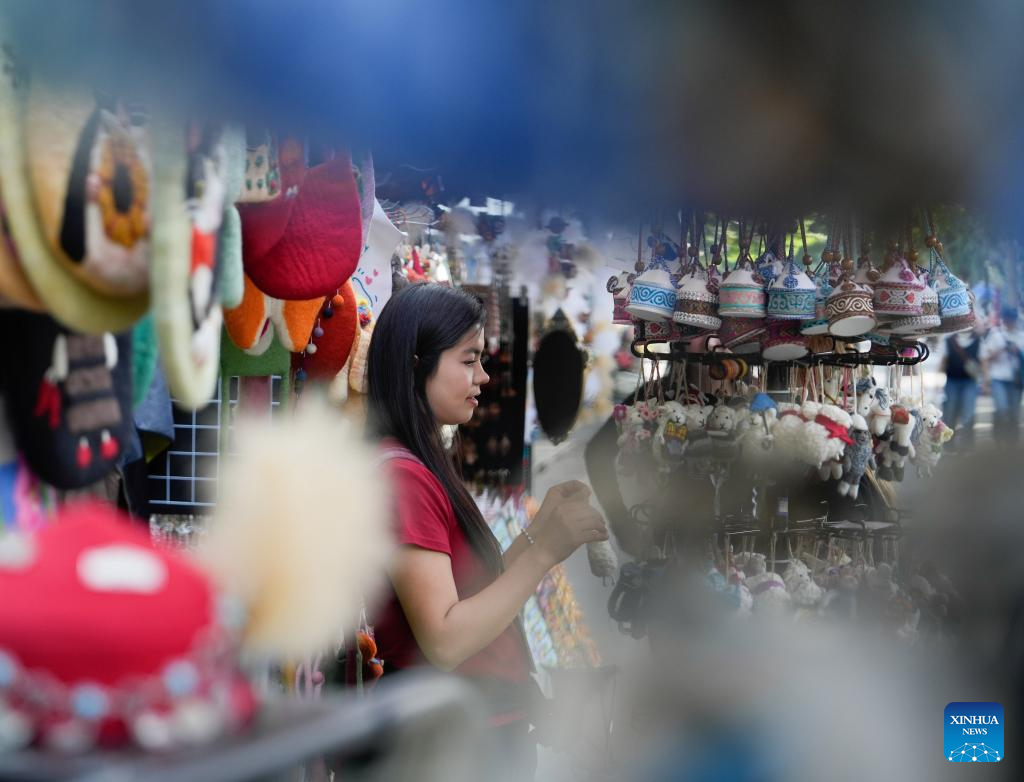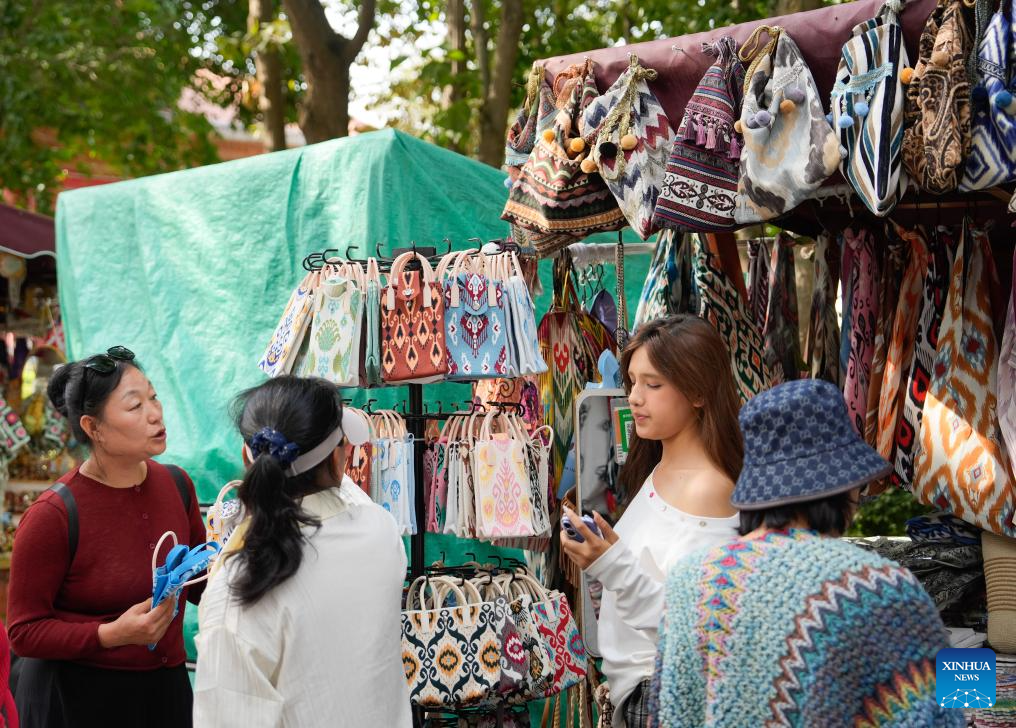 Tourists buy souvenirs in Liuxing block of Yining, Ili Kazak Autonomous Prefecture, northwest China's Xinjiang Uygur Autonomous Region, Sept. 8, 2025. (Xinhua/Zhang Haobo)