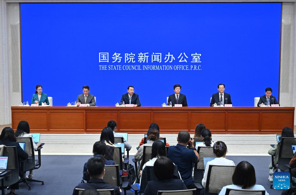 The State Council Information Office (SCIO) holds a press conference on achievements in high-quality natural resources development during the 14th Five-Year Plan period (2021-2025) in Beijing, capital of China, Sept. 10, 2025. (Xinhua/Cai Yang)