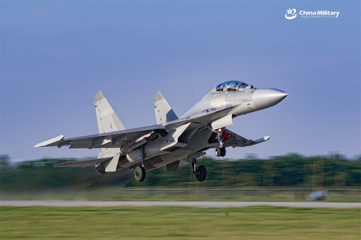 A J-16 fighter jet attached to the air force under the Chinese PLA Eastern Theater Command takes off during a flight training exercise. (eng.chinamil.com.cn/Photo by Xiong Wei)