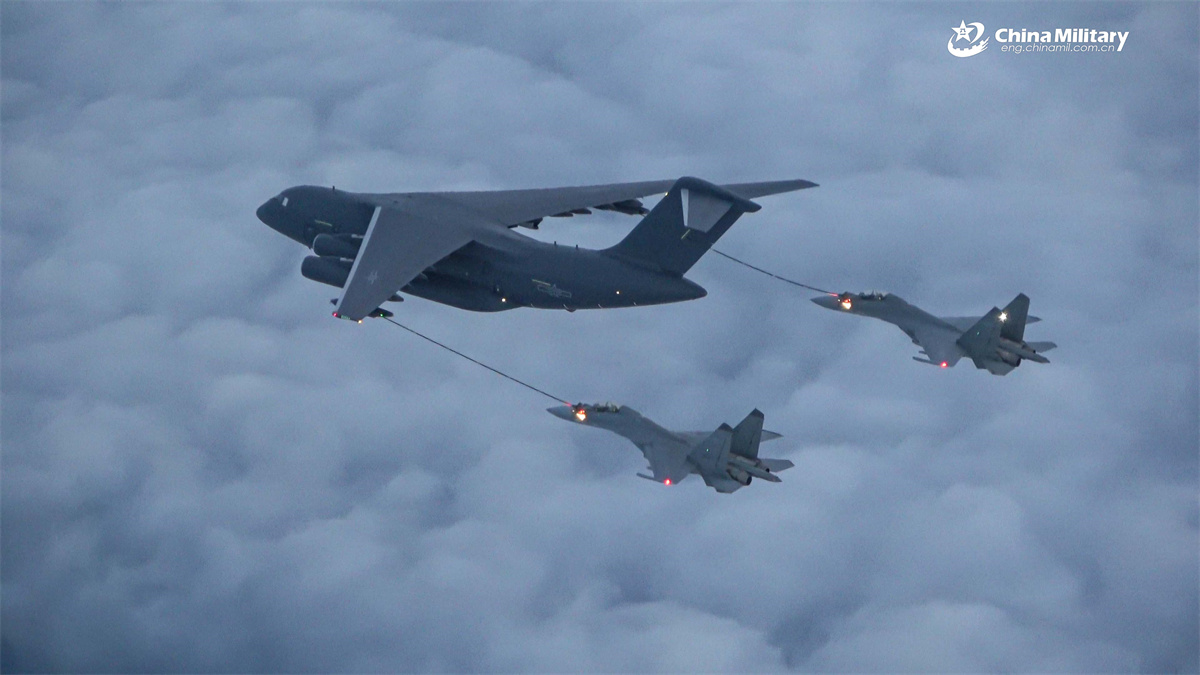 YY-20 tanker aircraft refuels J-16 fighter jets