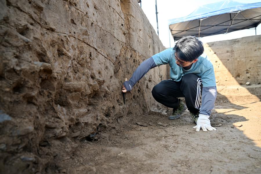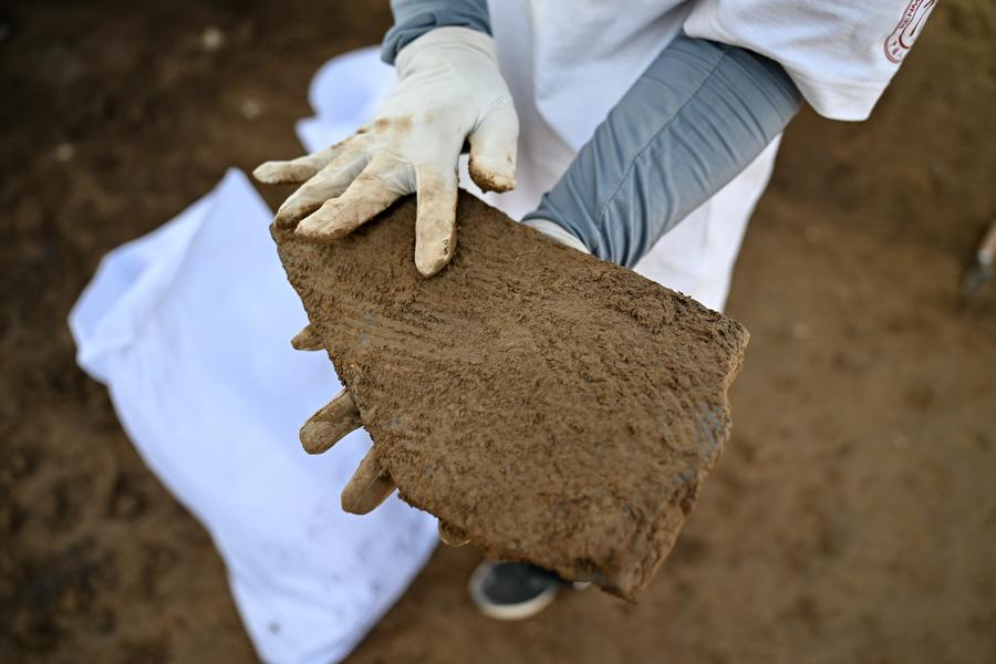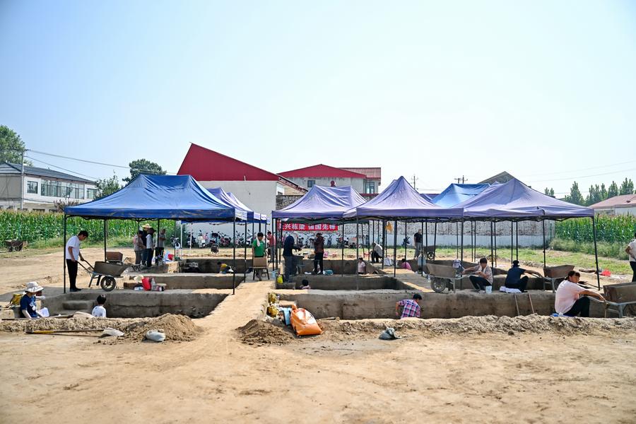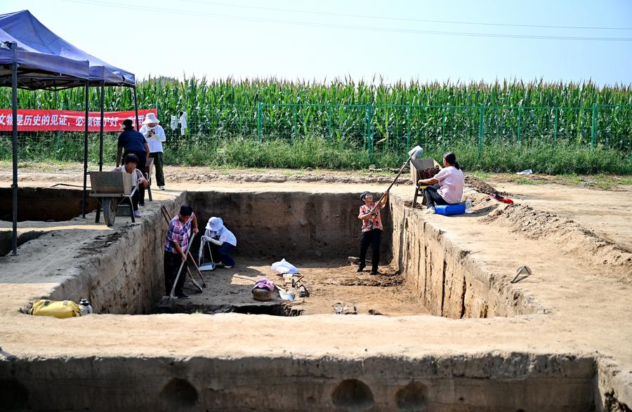 This photo taken on Sept. 10, 2025 shows scene during the sixth excavation of the Bairen Town site in Xingtai City, north China's Hebei Province. (Xinhua/Mu Yu)