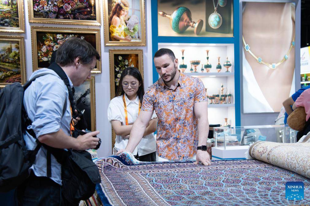 This photo taken on Sept. 10, 2025 shows an Iranian booth of the thematic exhibitions during the 2025 China International Fair for Trade in Services (CIFTIS) at Shougang Park in Beijing, capital of China. The 2025 CIFTIS opened in Beijing on Wednesday, themed "Embrace Intelligent Technologies, Empower Trade in Services." (Xinhua/Zhou Tinglu)
