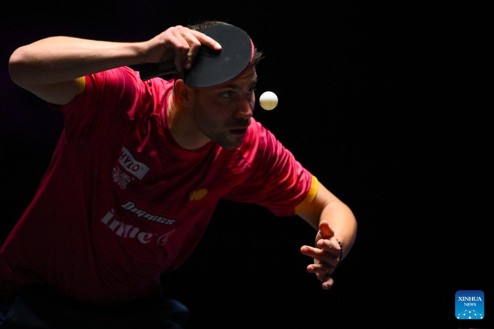 Patrick Franziska of Germany competes during the men's singles round of 32 match against Xiang Peng of China at the 2025 World Table Tennis (WTT) Champions Macao in Macao, south China, Sept. 10, 2025. (Xinhua/Cheong Kam Ka)