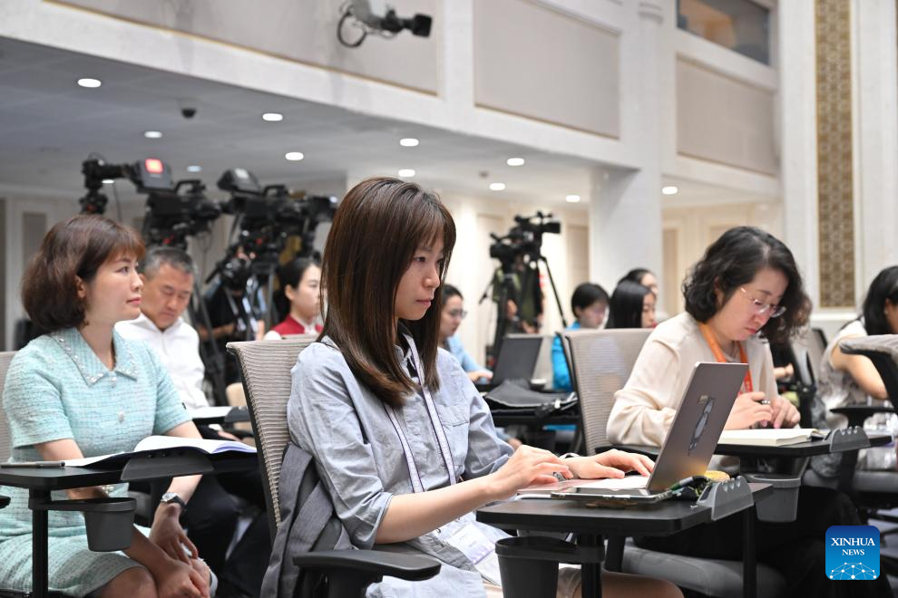 Journalists work at a press conference held by the State Council Information Office (SCIO) on high-quality development of the cultural heritage sector during the 14th Five-Year Plan period (2021-2025) in Beijing, capital of China, Sept. 10, 2025. (Xinhua/Jin Liangkuai)