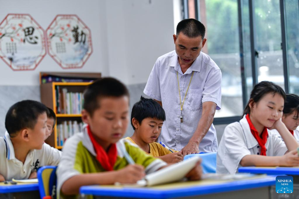 Ren Dabing instructs students at Molao Youyi Primary School in Biancheng Town of Huayuan County, central China's Hunan Province, Sept. 9, 2025. (Xinhua/Yang Wenbin)