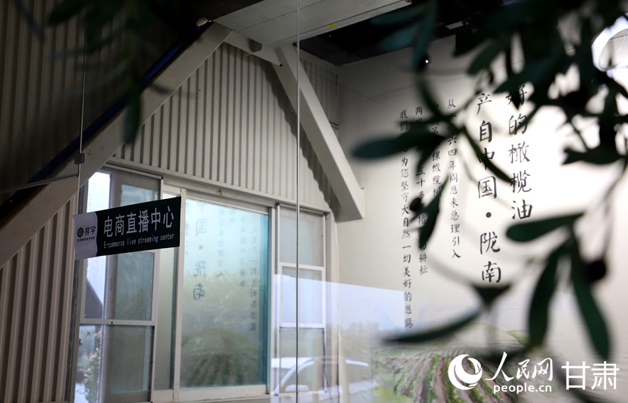 Photo shows the e-commerce livestream center of Longnan Xiangyu Olive Development Co., Ltd. in Longnan city, northwest China's Gansu Province. (People's Daily Online/Shao Lan)